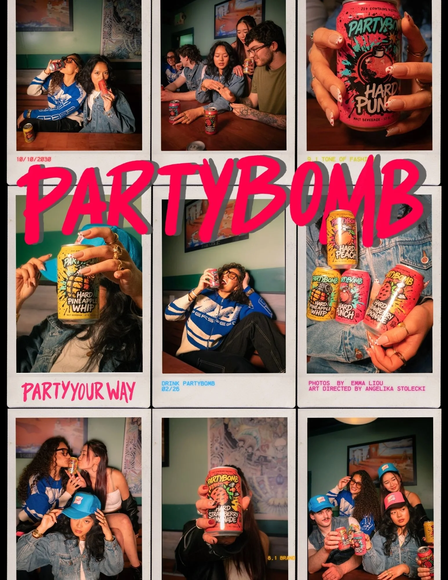 PartyBomb partnered with The Racks Eugene for a fun community popup where we were giving ou merch and samples of our drink. To promote this, we bought a space in their magazine for an advertisement that we wanted to feel both authentic to our brand and editorial.